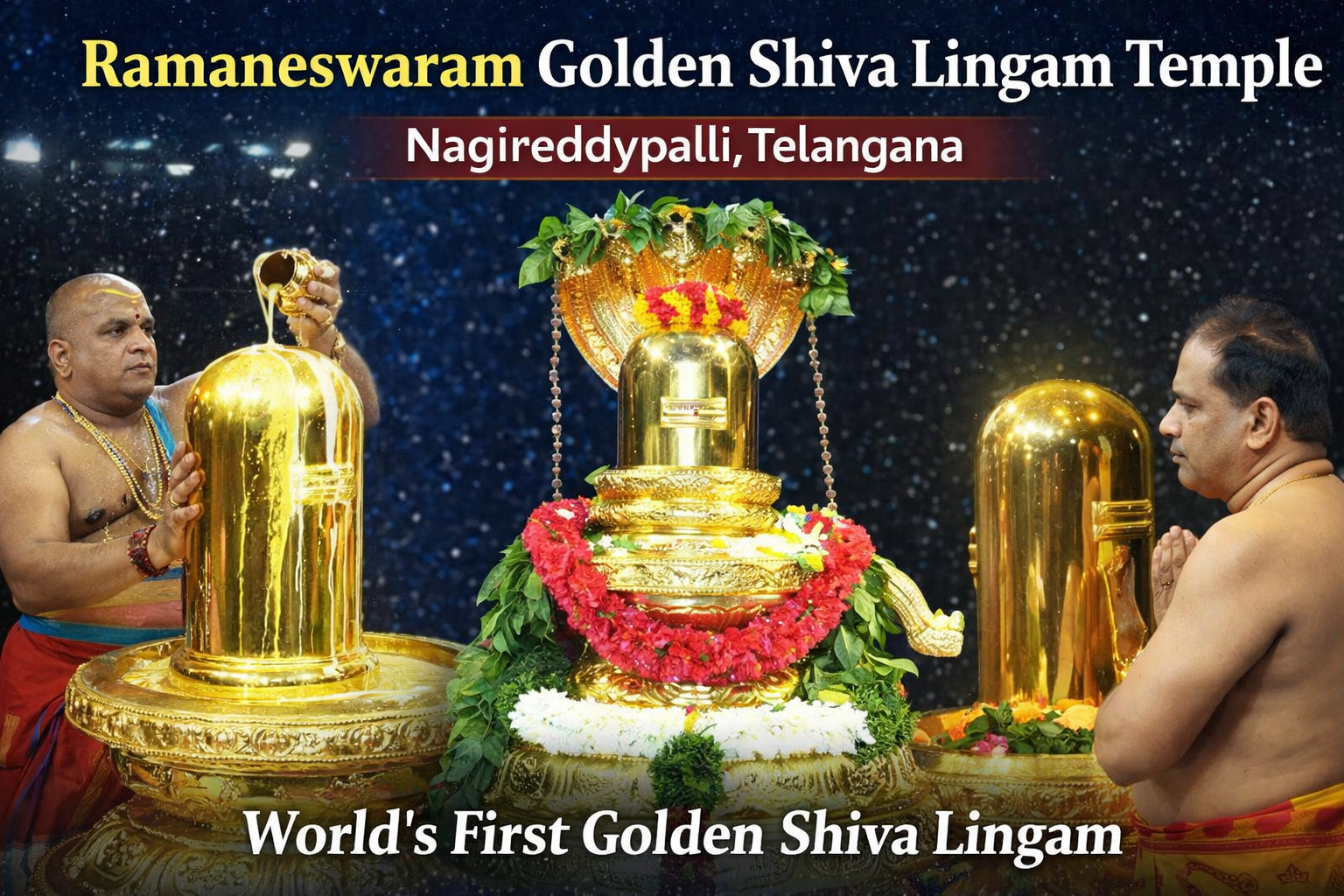 Ramaneswaram Golden Shiva Lingam Temple is one of the most unique pilgrimage spots in Telangana—not just because it’s a sacred Shiva shrine, but because it houses what devotees believe is the world’s first Golden Shiva Lingam.