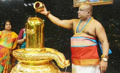 Devotees can participate in abhishekam by offering milk and water to the Golden Shiva Lingam — a traditional practice symbolizing purification and devotion.